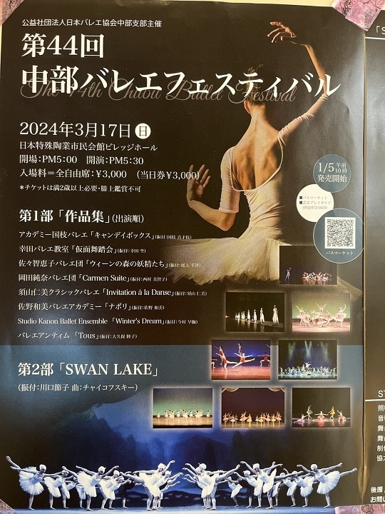 公益社団法人日本バレエ協会中部支部主催『第44回中部バレエフェスティバル』に当バレエ団も参加いたします。